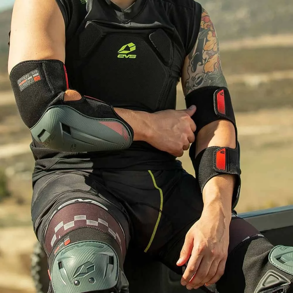 - A grid of impact dampening pads lifts the protective gear off the skin, allowing for increased airflow.
