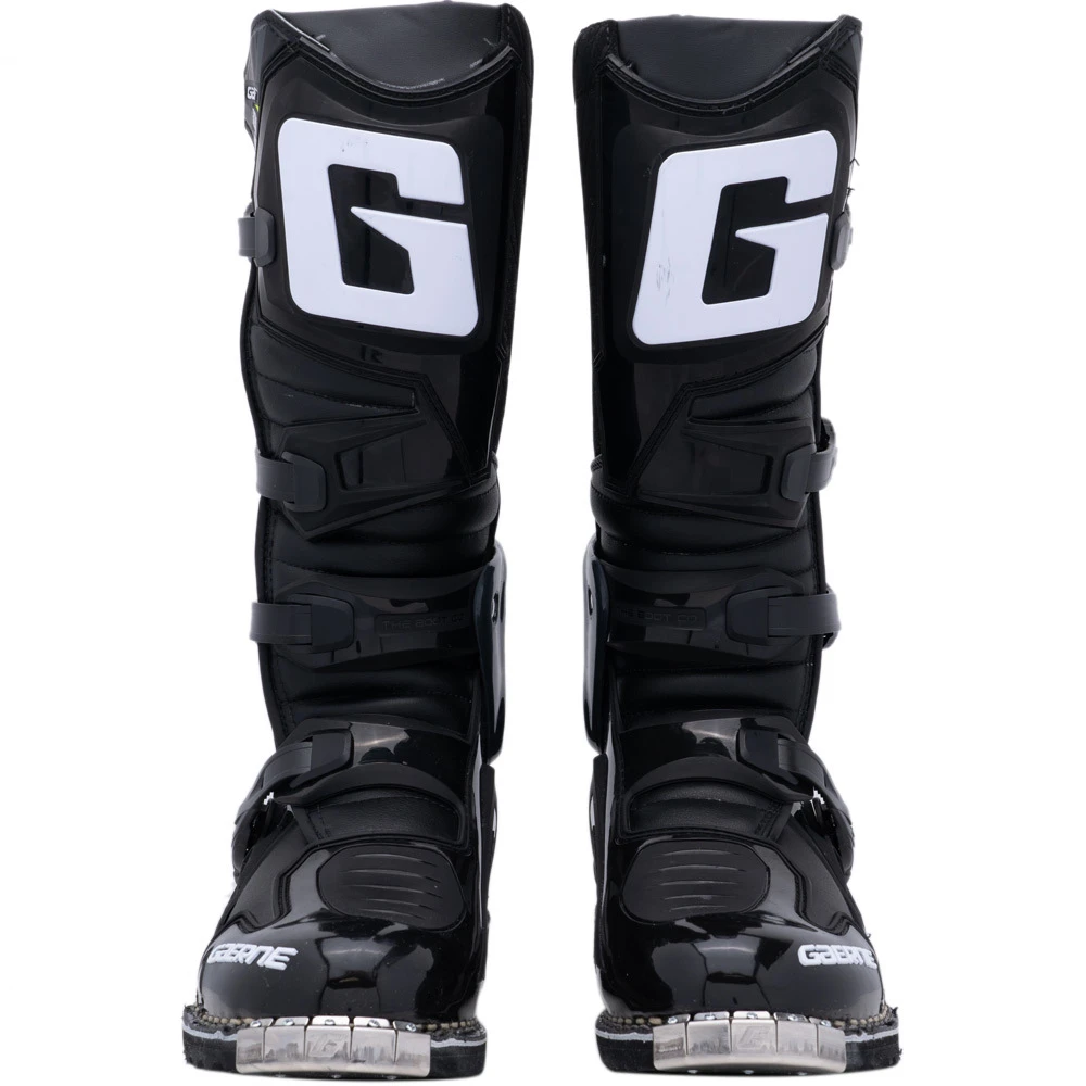 This innovative boot has a sleek new look. Partially due to the exclusive Gaerne โwrap aroundโ ankle pivot system. This new, lightweight feature allows the rider more ankle support while at the same time giving you a comfortable fit. New alloy buckles, by removing the first two buckles on the top it is possible to make the opening wider to accommodate a bigger leg or knee brace. Heavy-duty burn guard, toe bumper and the trademark Gaerne sole complete the task.
