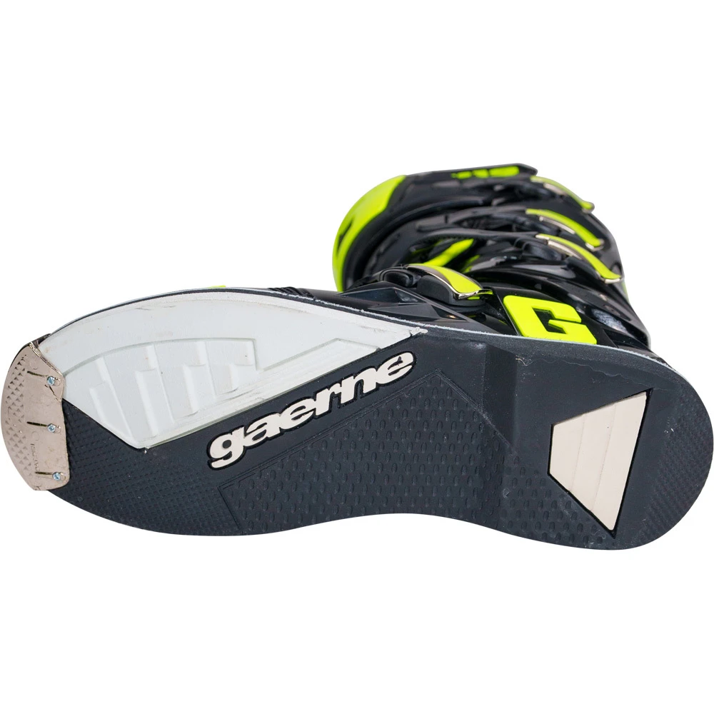 - Dual Stage Pivot System – This revolutionary new system is patented and exclusive to Gaerne and is certainly going to be a hit. The first pivot is attached to the “Razorback”. This provides a rigid component that offers strong lateral support while a glide-plate keeps the upper in a firm and upright position. The second pivot is fixed on a sliding glide that allows the riders foot to feel natural while on the peg in a shifting or breaking situation. However, it will “bottom out” and absorb shock in the case of over-jumping a jump or in the case of unwanted compression.