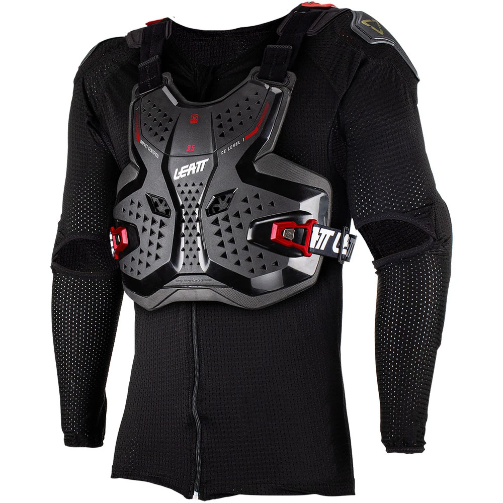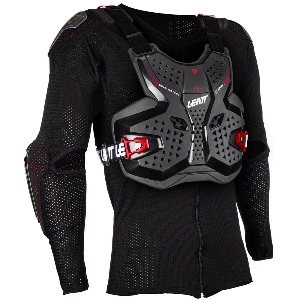 The 3.5 Body Protector Junior is a new product for 2023, it comes in 2 pieces, the first is a zip-up compression suit with built shoulder and elbow impact protectors and also a height-adjustable kidney belt, then the second is a full hard-shell CE impact-certified chest and back protector to be used over the top.