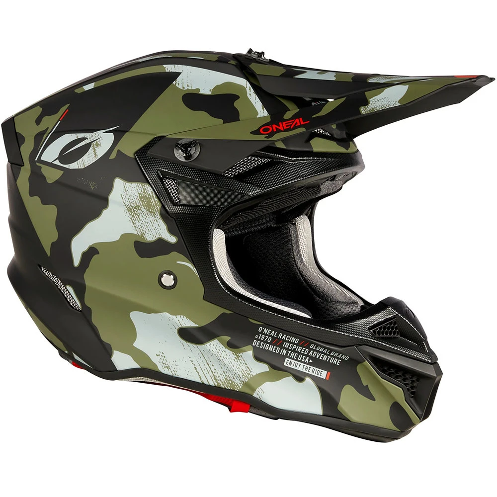 The OโNeal 5 Series Helmet is constructed using a lightweight ABS shell. This 5 Series line pairs a Coolmaxยฎ liner with multiple air vents to help keep you cool and dry during longer rides and hot summer motos.