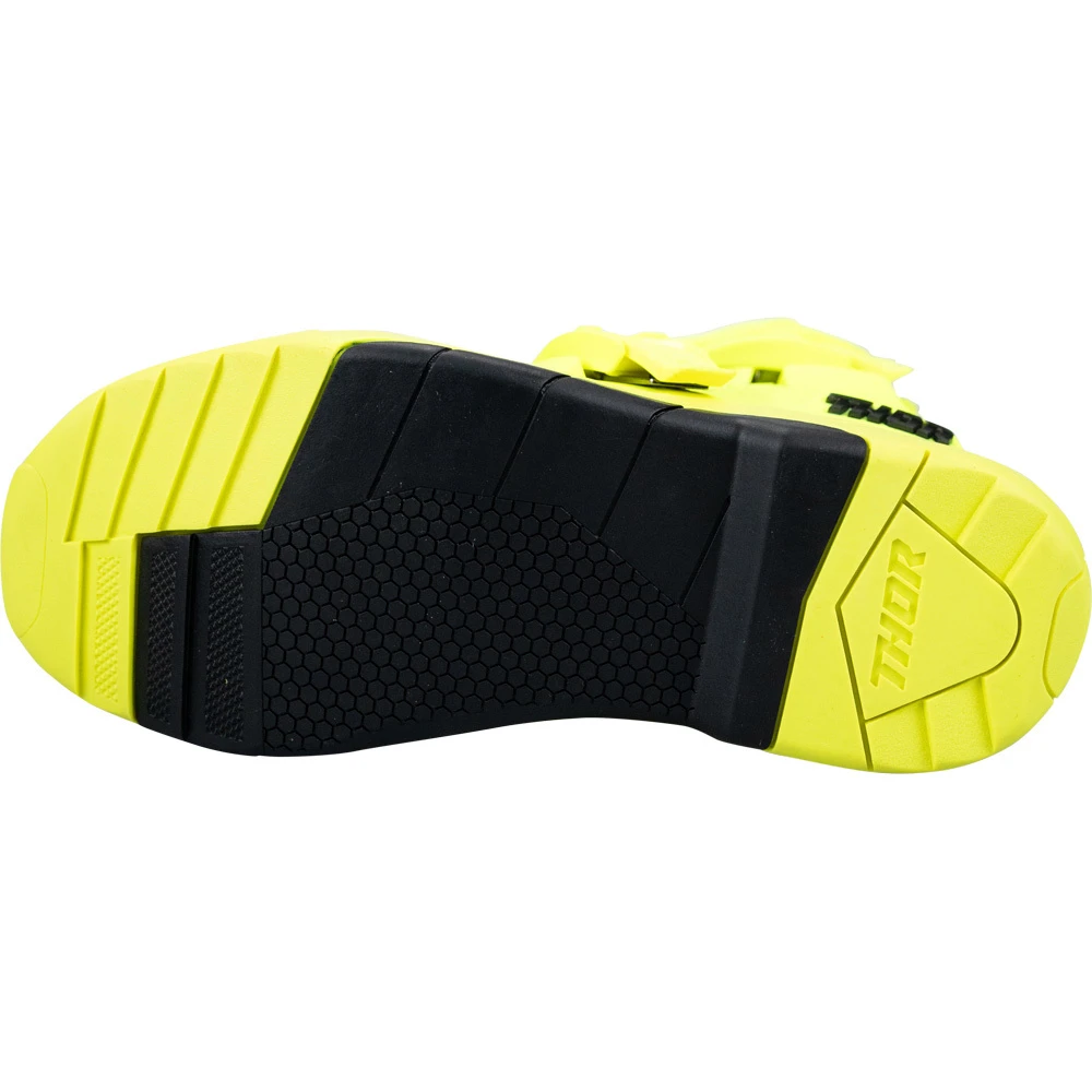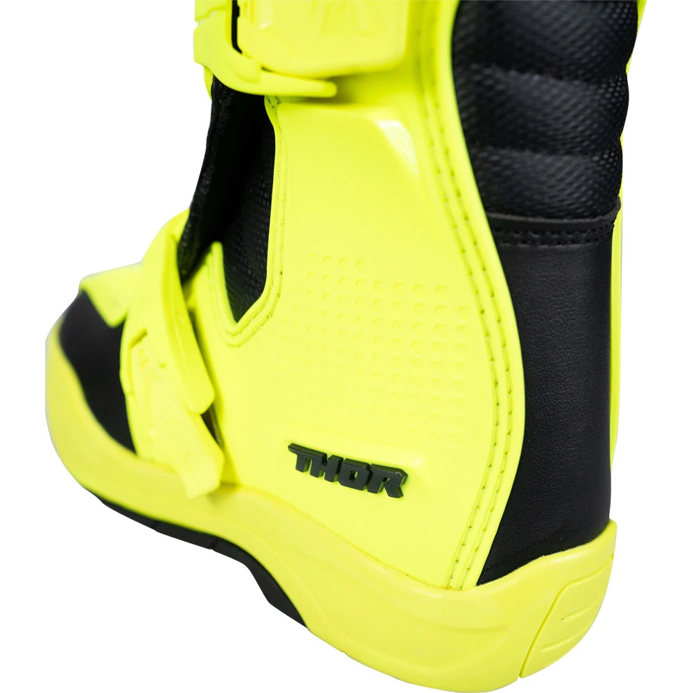 Experience the pinnacle of motocross gear innovation with the THOR BLITZ XR Boots. These boots have undergone rigorous testing and are certified to meet EN 13634:2017 standards, ensuring excellence in protection and performance. Crafted for the demanding off-road rider, the pre-curved injection molded shin plate guarantees unmatched leg protection against impacts, allowing you to tackle any challenge with confidence. Personalize your fit with ease using the three adjustable straps, offering a snug and secure feel tailored to your preference.