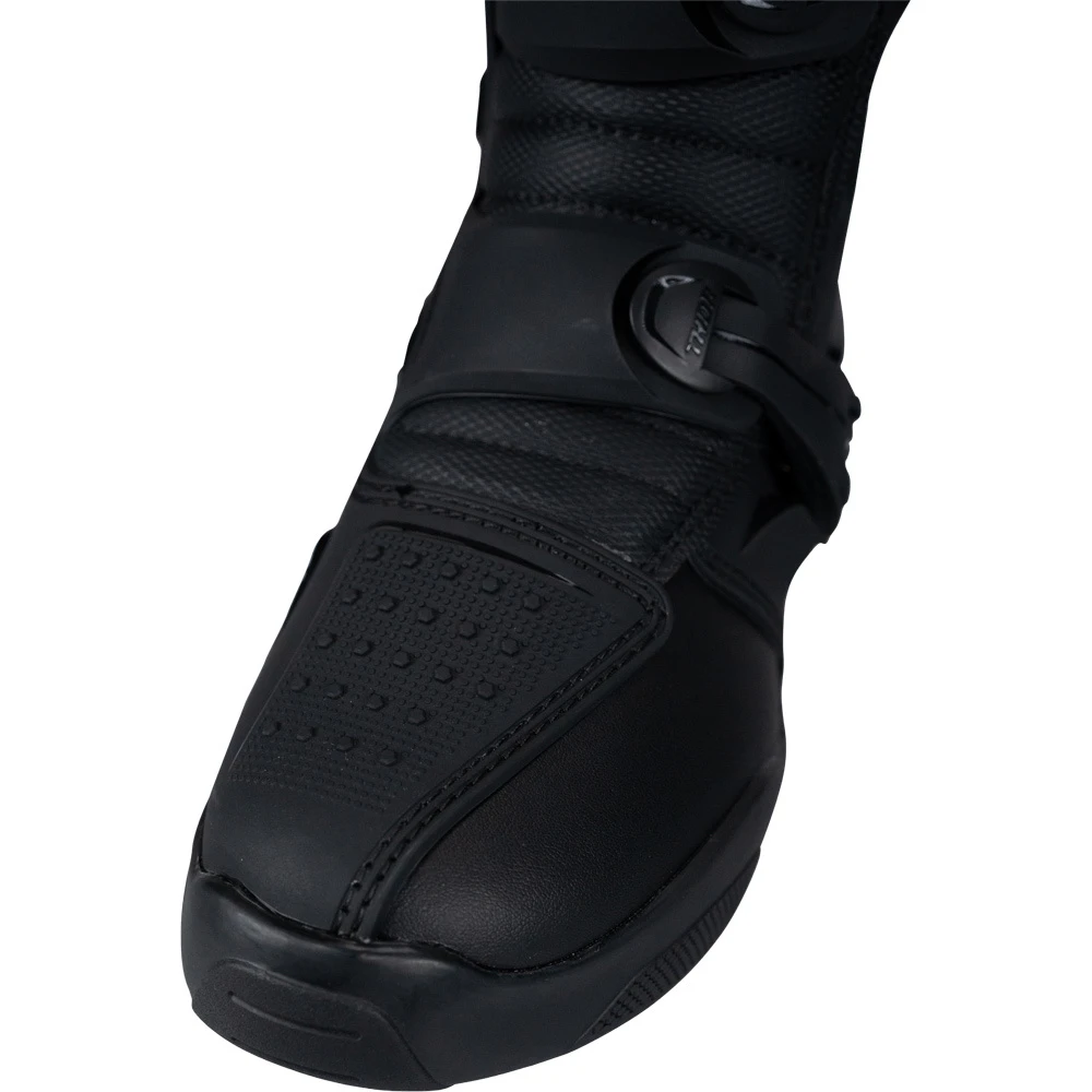 Experience the pinnacle of motocross gear innovation with the THOR BLITZ XR Boots. These boots have undergone rigorous testing and are certified to meet EN 13634:2017 standards, ensuring excellence in protection and performance. Crafted for the demanding off-road rider, the pre-curved injection molded shin plate guarantees unmatched leg protection against impacts, allowing you to tackle any challenge with confidence. Personalize your fit with ease using the three adjustable straps, offering a snug and secure feel tailored to your preference.